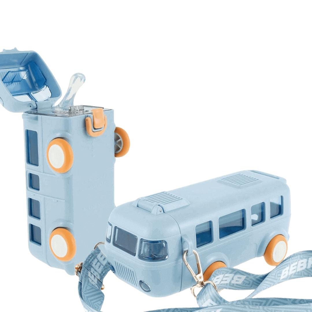 Cute Car/Bus Straw Water Bottle for Kids – Leak-Proof Cartoon Cup with Shoulder Strap